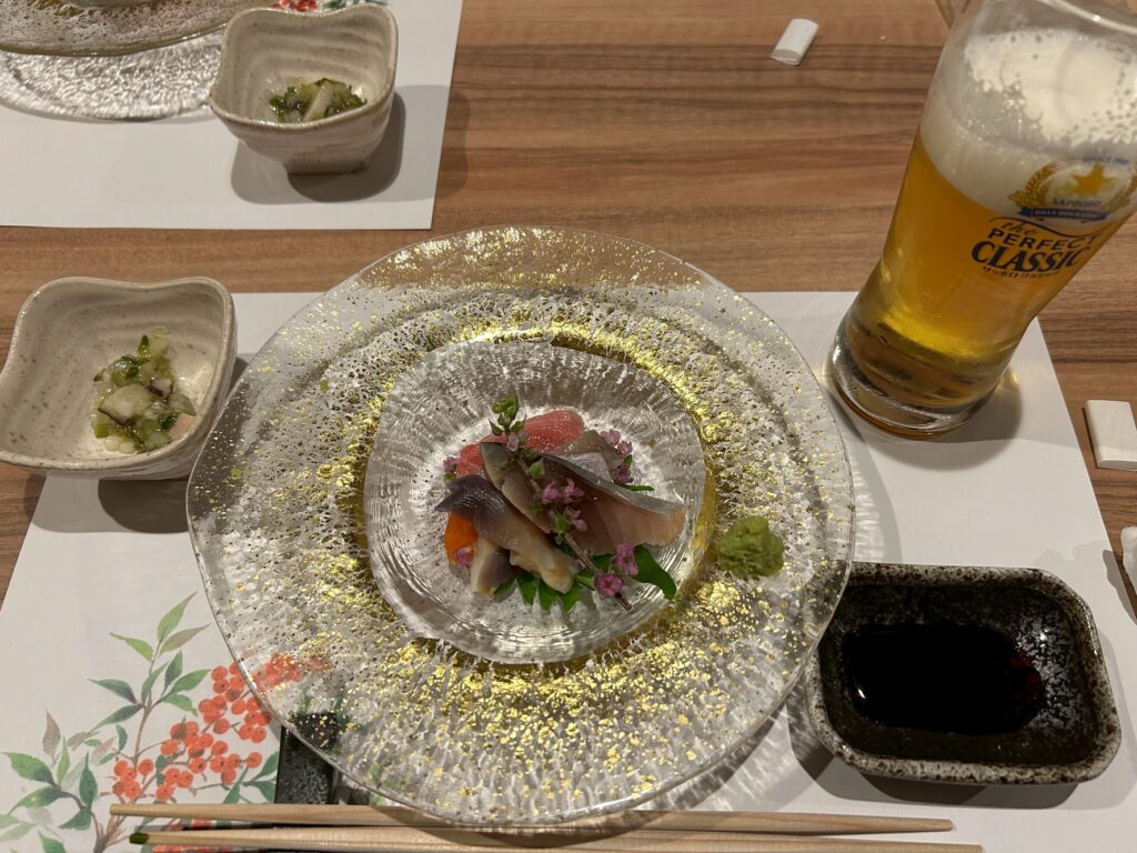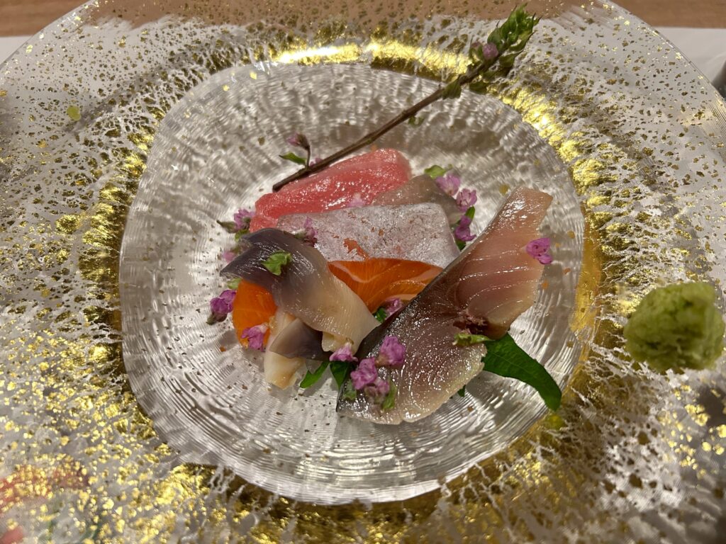 お刺身はシソの花を自分で散りばめます。とってもお洒落!