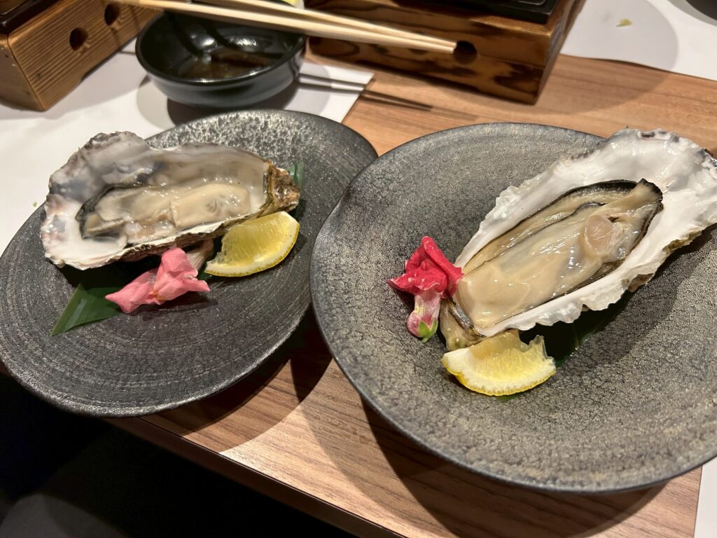 コースにはありませんでしたが、生け簀に牡蠣がいたので注文できるか確認!右が蒸し、左が生、牡蠣まで食べれるなんて最高(^0^)