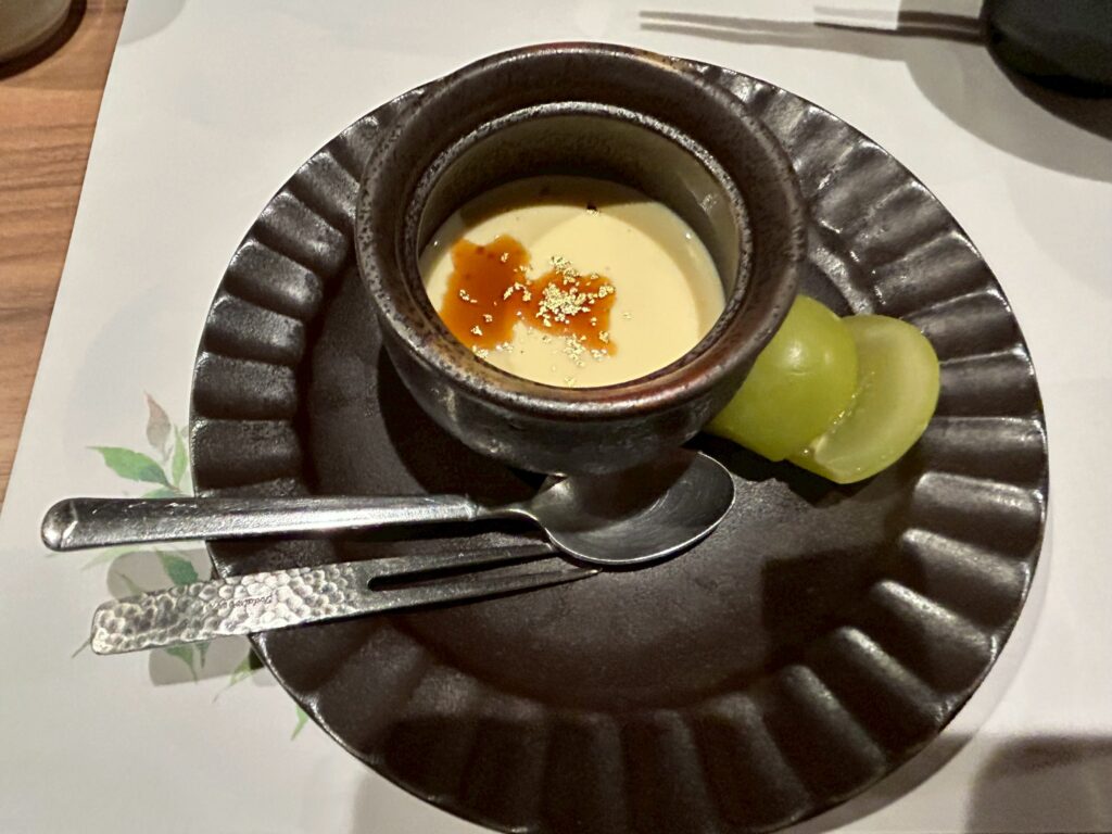 デザートはプリンとシャインマスカット!プリンもとっても美味しくて、3個くらい食べたかったですw