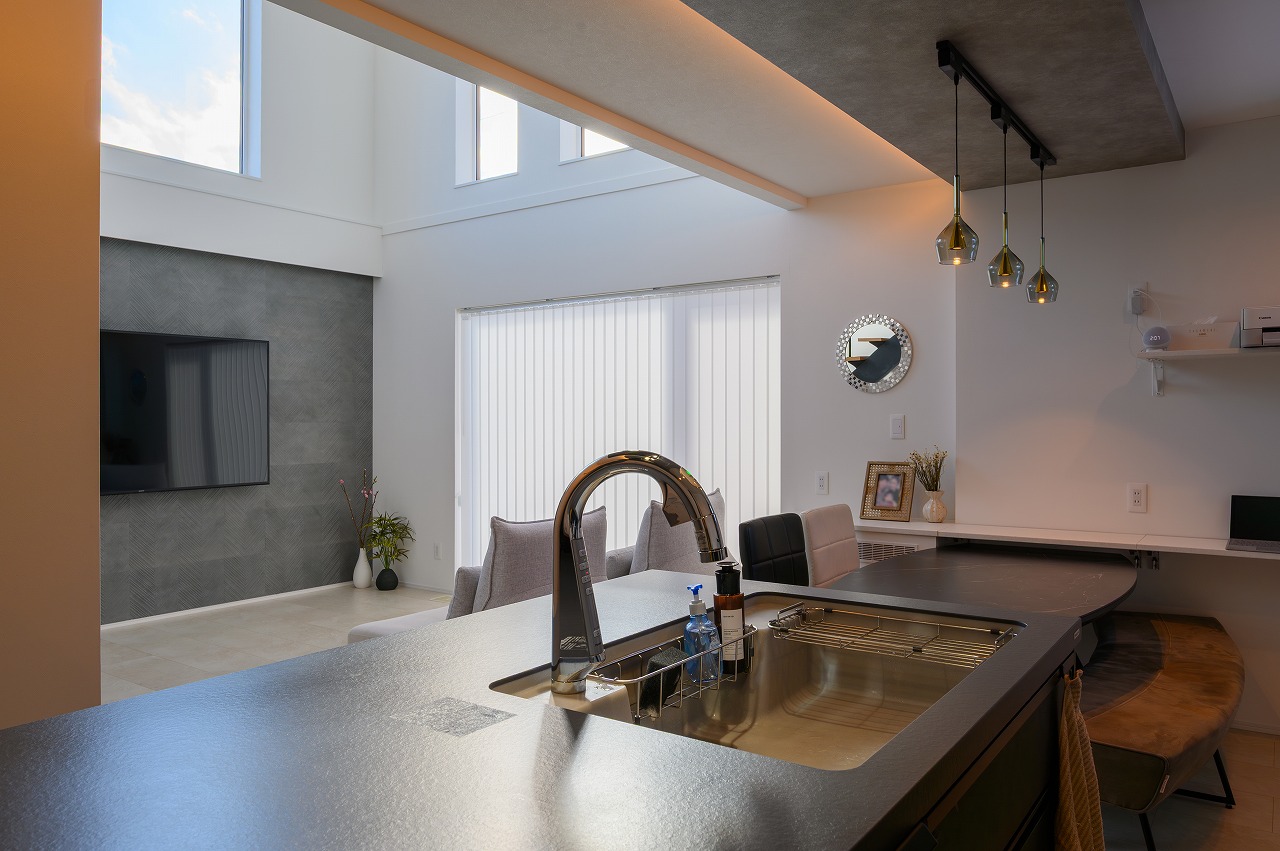 キッチンに立ちながら、リビングで遊ぶ子どもたちを見守れる——そんな安心感と心地よさが両立したLDKが完成しました。