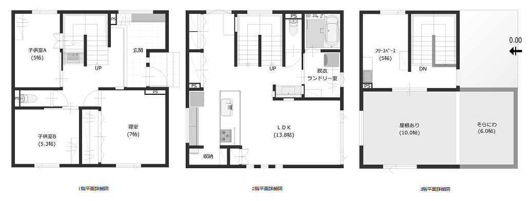 屋根付きの屋上庭園と吹き抜けからお日様が届く土間で年中遊んで暮らせる住まい