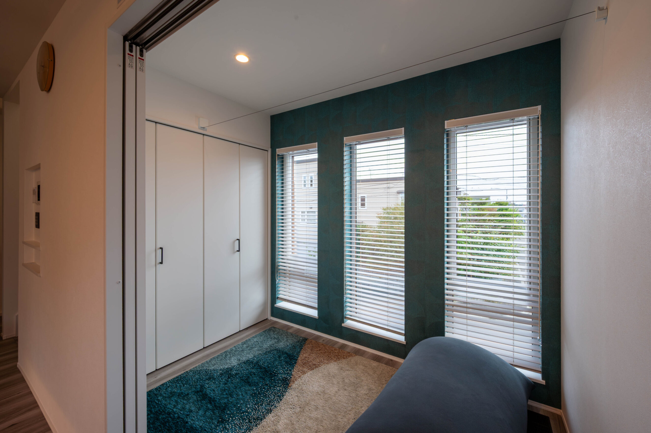3帖の客間にはロープが収納されるランドリーロープ[カワジュン]があるので、家事・寛ぎ・来客用と用途に合わせ多目的に使用できる便利な空間